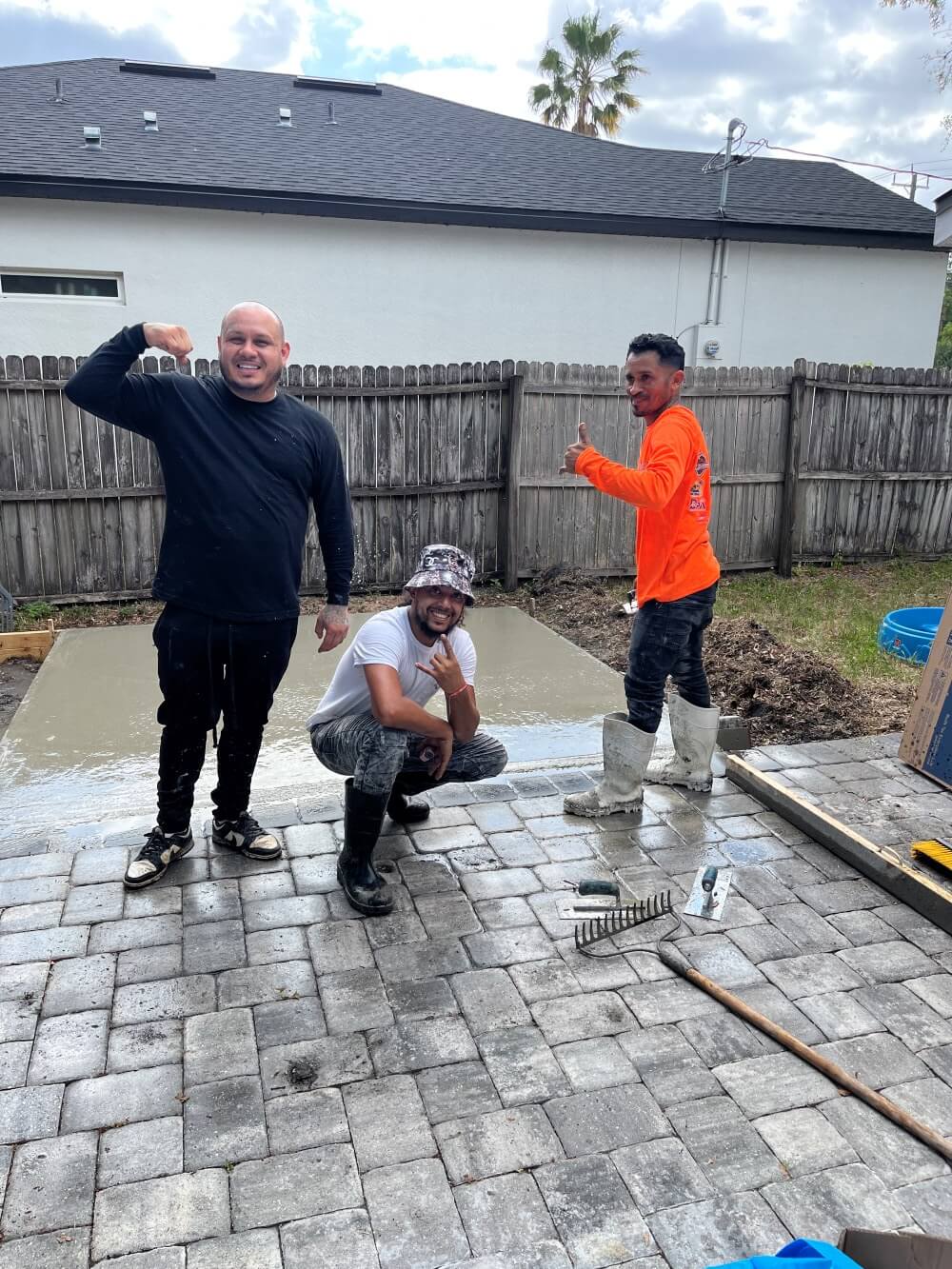 The timeline depends on size and materials. A small paver patio may take a few days, while larger custom driveways or patios with built-in features can take 1–2 weeks. We provide a detailed timeline before starting your project.